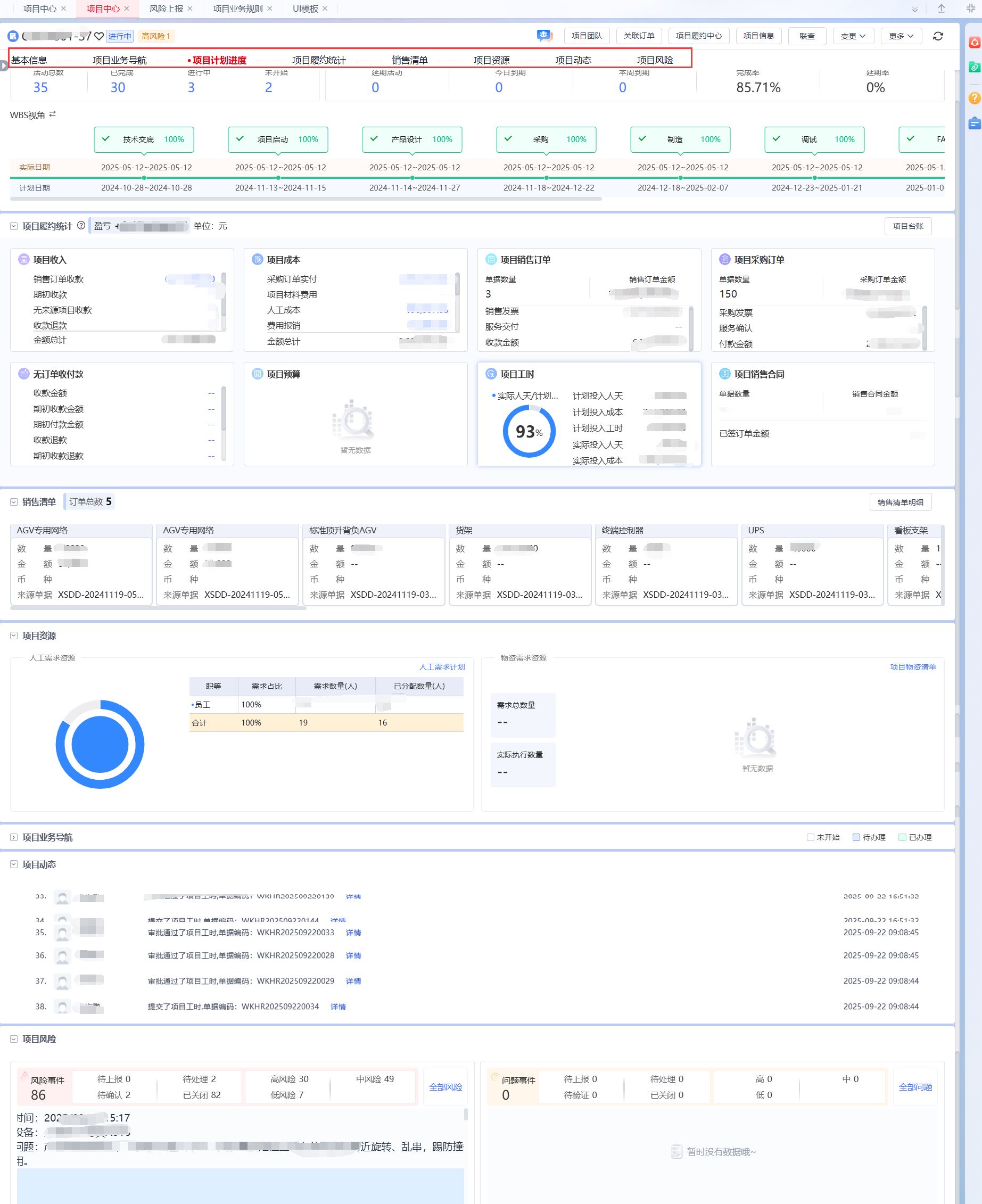 依托项目型销售主线,实现从立项、WBS分解、进度跟踪到风险记录的全过程管理,通过工时计划与上报机制,实时识别成本偏差,提升项目执行可控性。