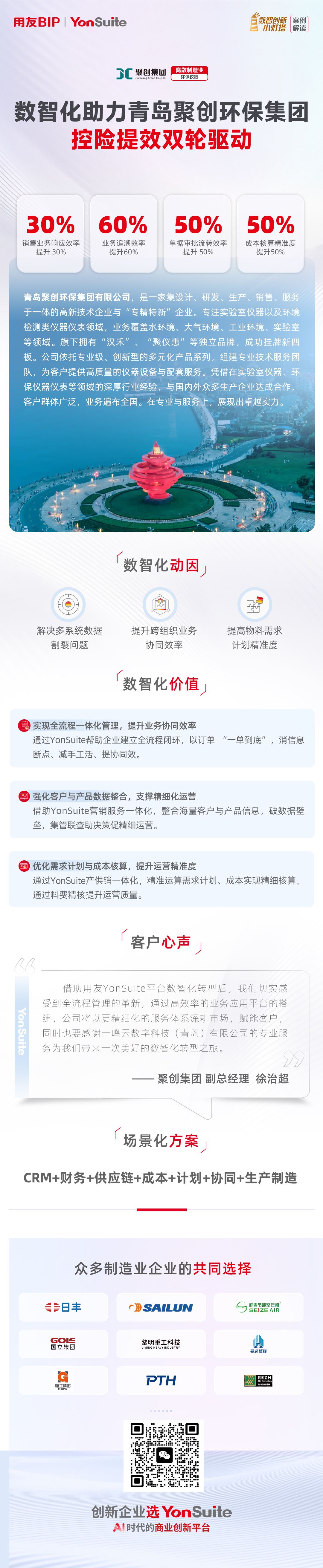 这些数字背后,是聚创从 “经验驱动” 到 “数据驱动” 的彻底转变,聚创集团副总经理徐治超表示:“借助用友YonSuite平台数智化转型后,我们切实感受到集团化管控、全流程管理的革新,通过效率率的业务应用平台的搭建,公司将以更精细化的服务体系深耕市场,赋能客户,”