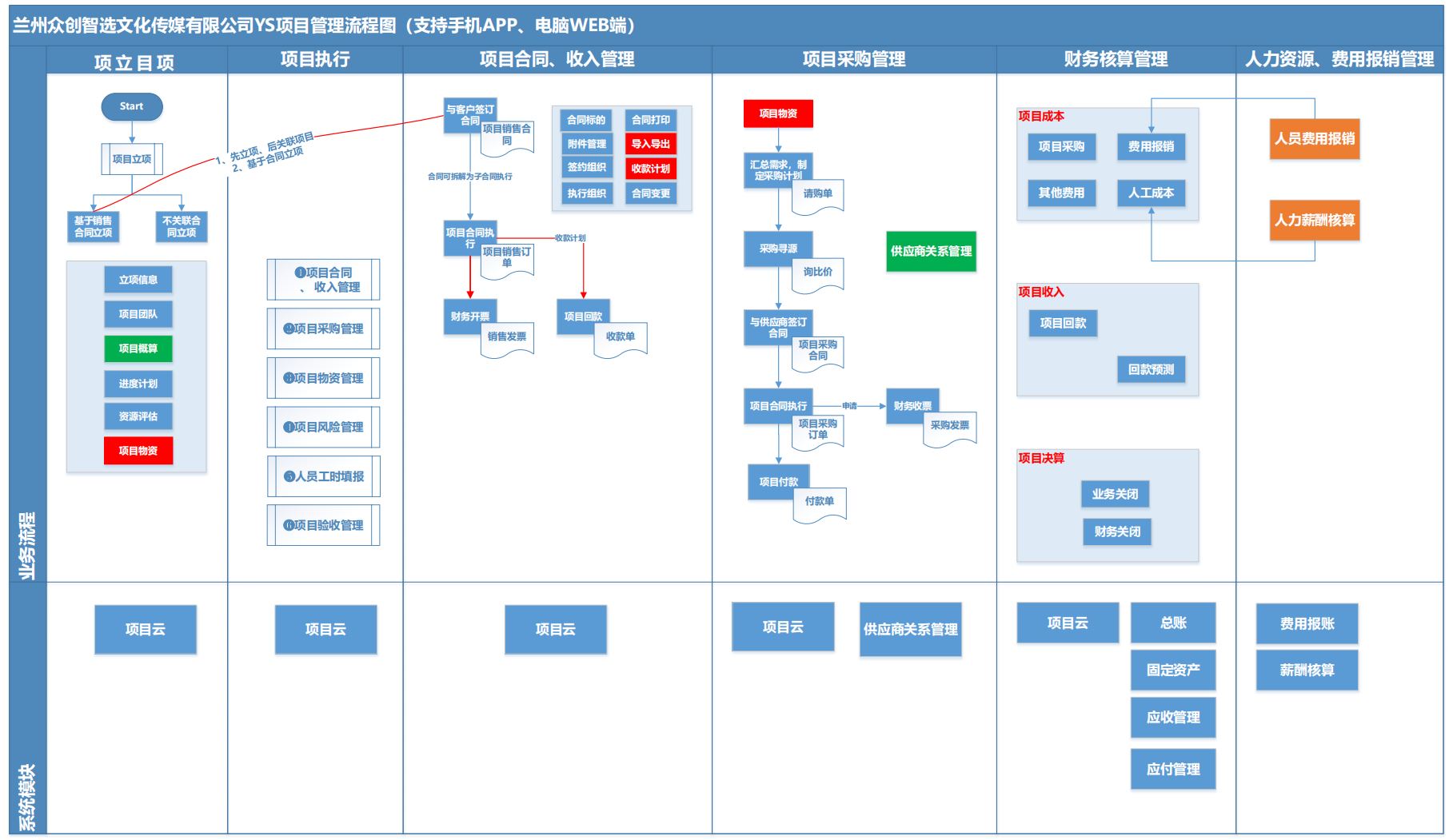 文化传媒公司大多以项目制为主,通常面临多个项目同时进行,这对项目管理的精细化提出了更高要求。为确保各项目顺利推进,需要科学管理协调各项目的进度,制定合理的预算、进行供应商遴选、成本控制及成本核算也是项目管理的关键环节。为此,众创智选需要实现项目管理的深度精细化管理,以项目为基本核算单元,建立项目、产品组/部门及公司三层级核算体系,持续强化公司运营核算能力。