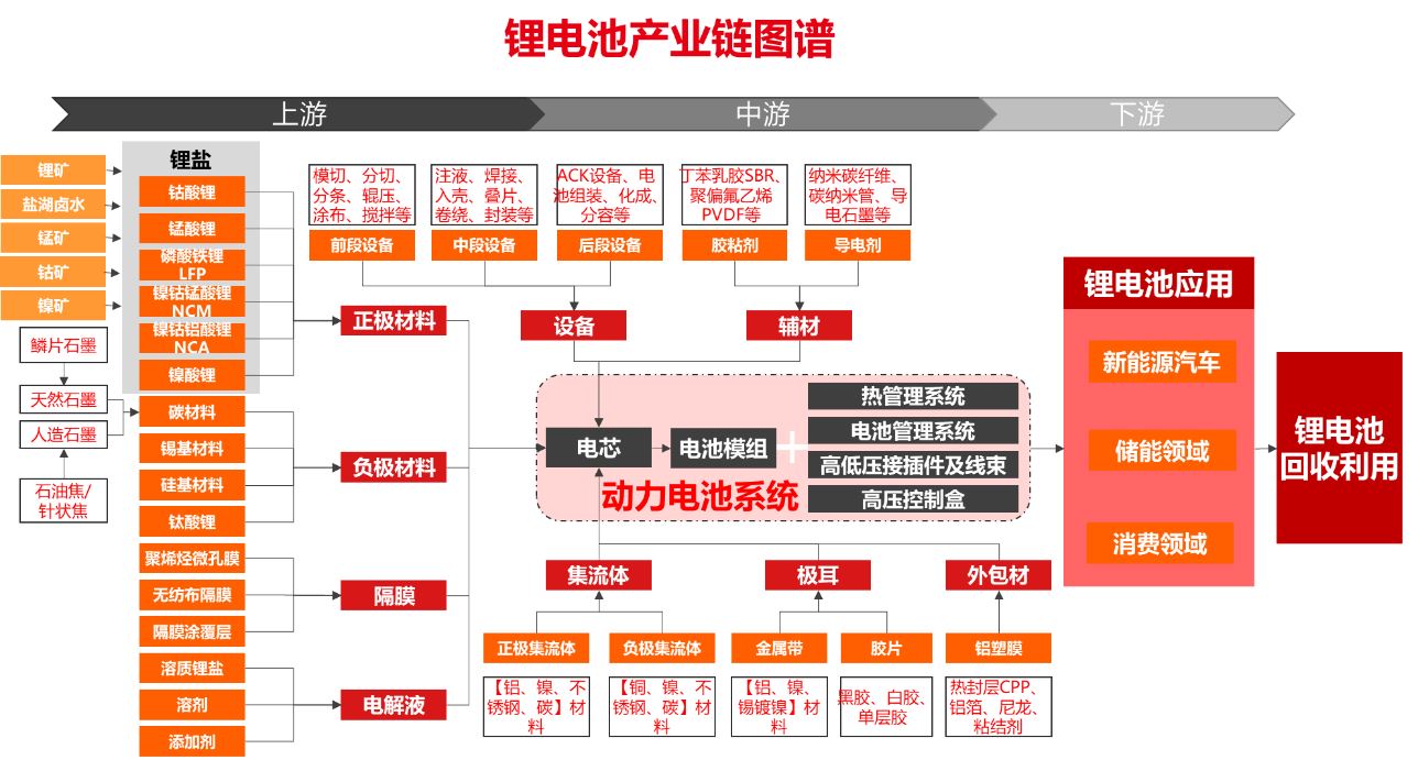 锂电池行业在全产业链上表现亮眼,无论是上游锂资源企业还是锂电池设备制造企业及锂电池原材料,还是中游锂电池、电芯制造及锂电池包,还是下游是锂电池应用和后对锂电池回收利用等都取得了突破,产生了众多具有核心优势的行业龙头企业。