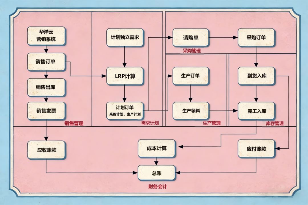 针对快消企业 “营销 - 计划 - 采购 - 生产 - 库存 - 财务” 的核心链路,YonSuite给出了一套 “打通数据、规范流程、提升效率” 的完整方案,华洋饮品的落地路径,你完全可以参考: