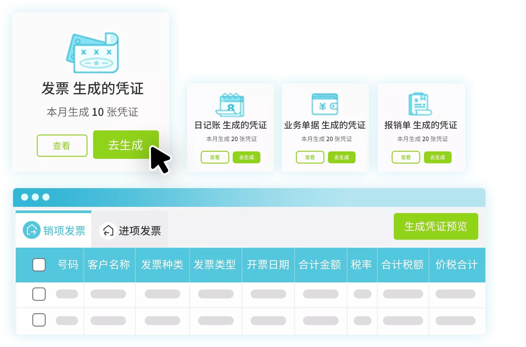 国税/个税一键申报,凭证自动生成税表;