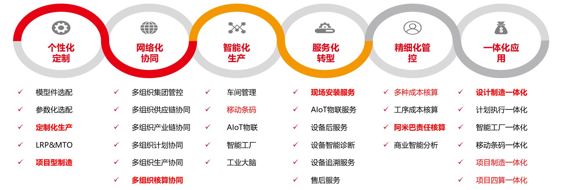 用友U9 cloud聚焦六大商业模式,全面支撑制造企业实现个性化定制、网络化协同、智能化生产、服务化转型、精细化管控、一体化应用,助推制造企业数智化转型,服务企业商业创新!