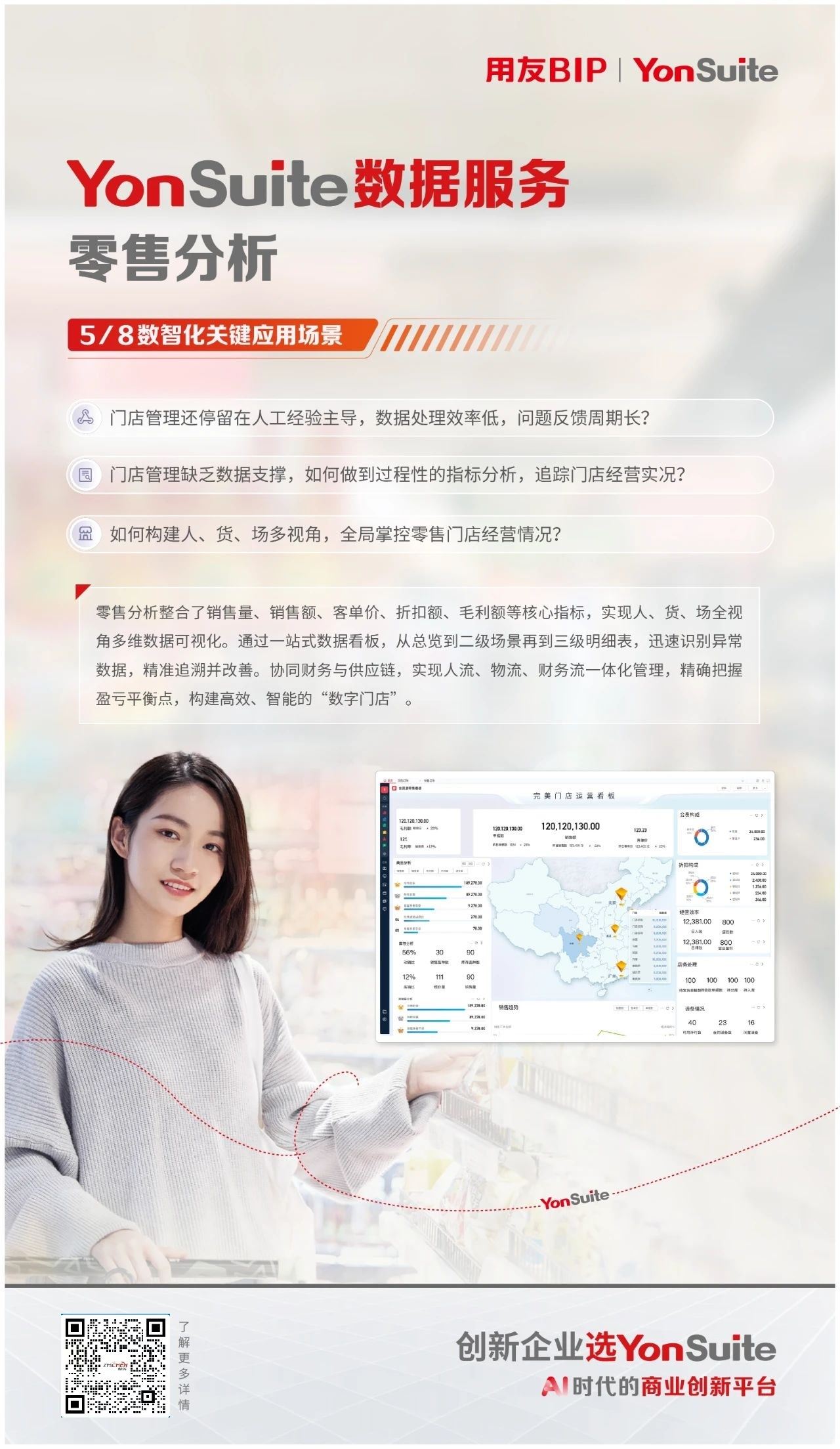 在消费品行业,数据已经成为推动门店运营和决策的关键力量,YonSuite预置零售主题分析,实现人、货、场全视角多维数据可视化,助力企业准确把握盈亏平衡点,构建快速、智能的“数字门店”。
