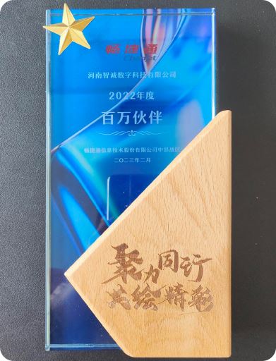 2023年 2 月,畅捷通信息技术股份有限公司在武汉开展了2023畅捷通渠道会议,此次会议中,河南智诚在伙伴中选拔被评选为“2022畅捷通百万伙伴奖”,这是一个重量级奖项,是对智诚作为畅捷通伙伴的实力肯定,也是对智诚公司在畅捷通2022年业务做出贡献的肯定。