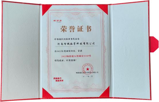 喜讯三:河南智诚荣获2022“畅捷通五级城市TOP奖”