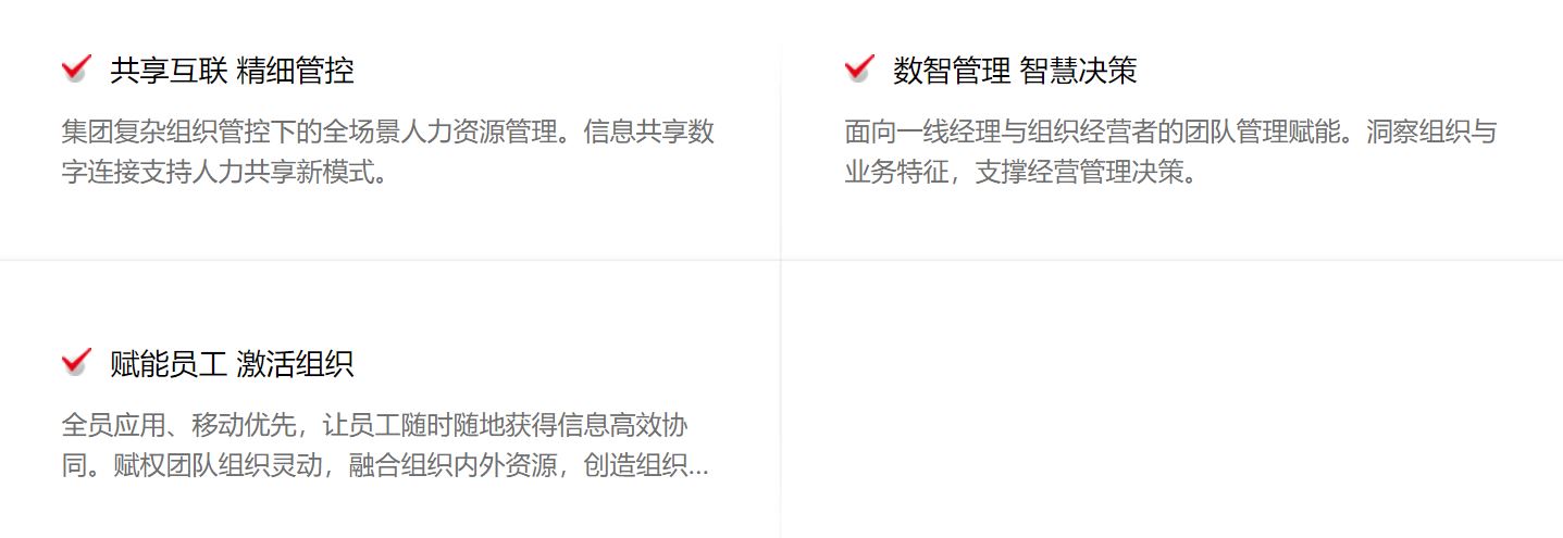 YonBIP人力云以“赋能员工、激活组织”为宗旨,围绕“卓越员工服务、智能人力运营、敏捷组织决策”核心价值,通过组织发展、员工体验、人力共享、智能招聘、 干部管理、目标绩效管理、人才发展、企业文化、数据智能等,涵盖社会化用工服务、数智化人才培养服务等业务服务,以及人力资源管理数智化转型咨询与规划服务,构建完整的、一体化数智人力资源解决方案。