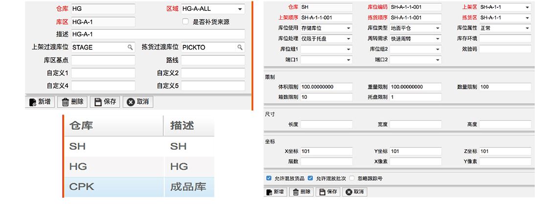 • 支持多仓管理,和同一仓库内的区域、库区、库位、库位组管理。