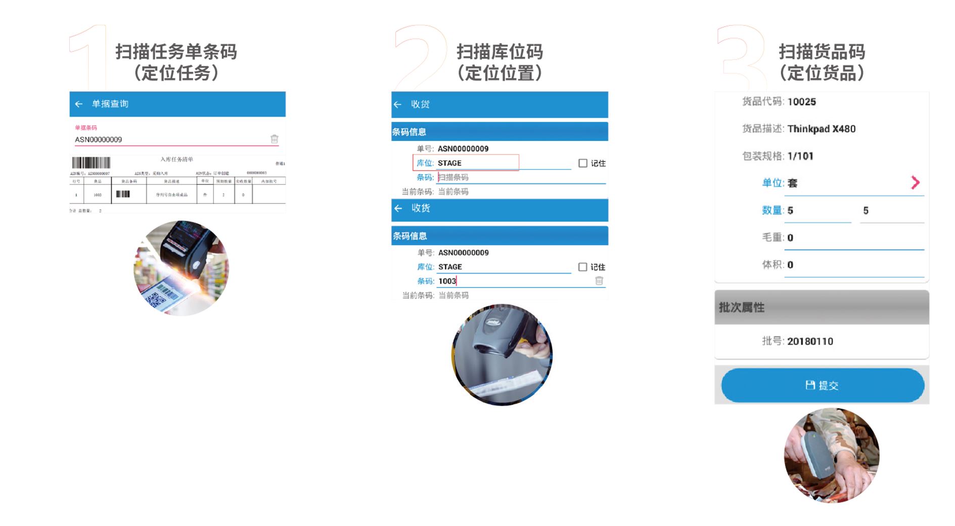 • 只需“三步扫码”完成即可完成手持端操作,简单快捷。