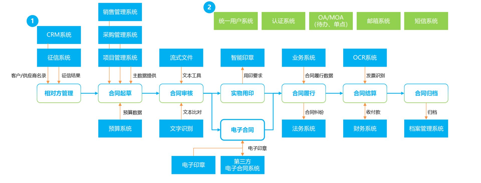 1、与合同业务过程存在数据关联的系统;2、支撑基础办公的系统