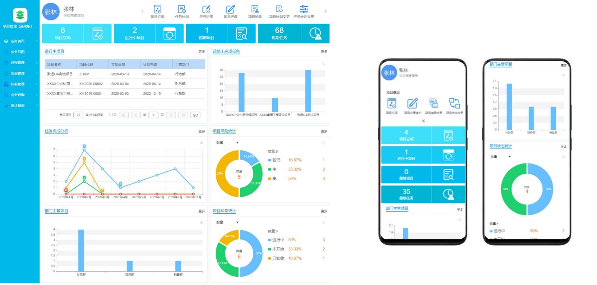 专属项目管理业务门户,帮助管理人员查看、分析相关数据报表,全业务支持PC和移动端使用。